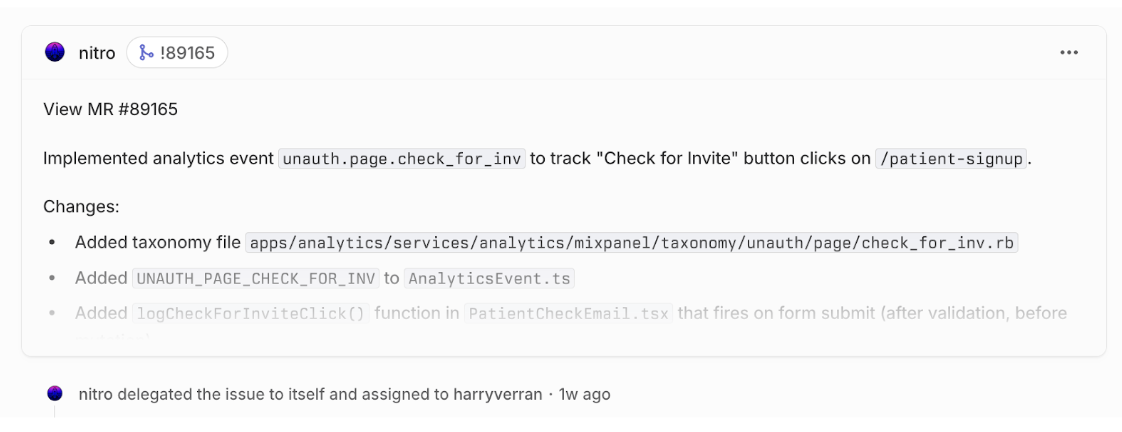 - In Linear: Assign Nitro to an issue or tag it in comments.