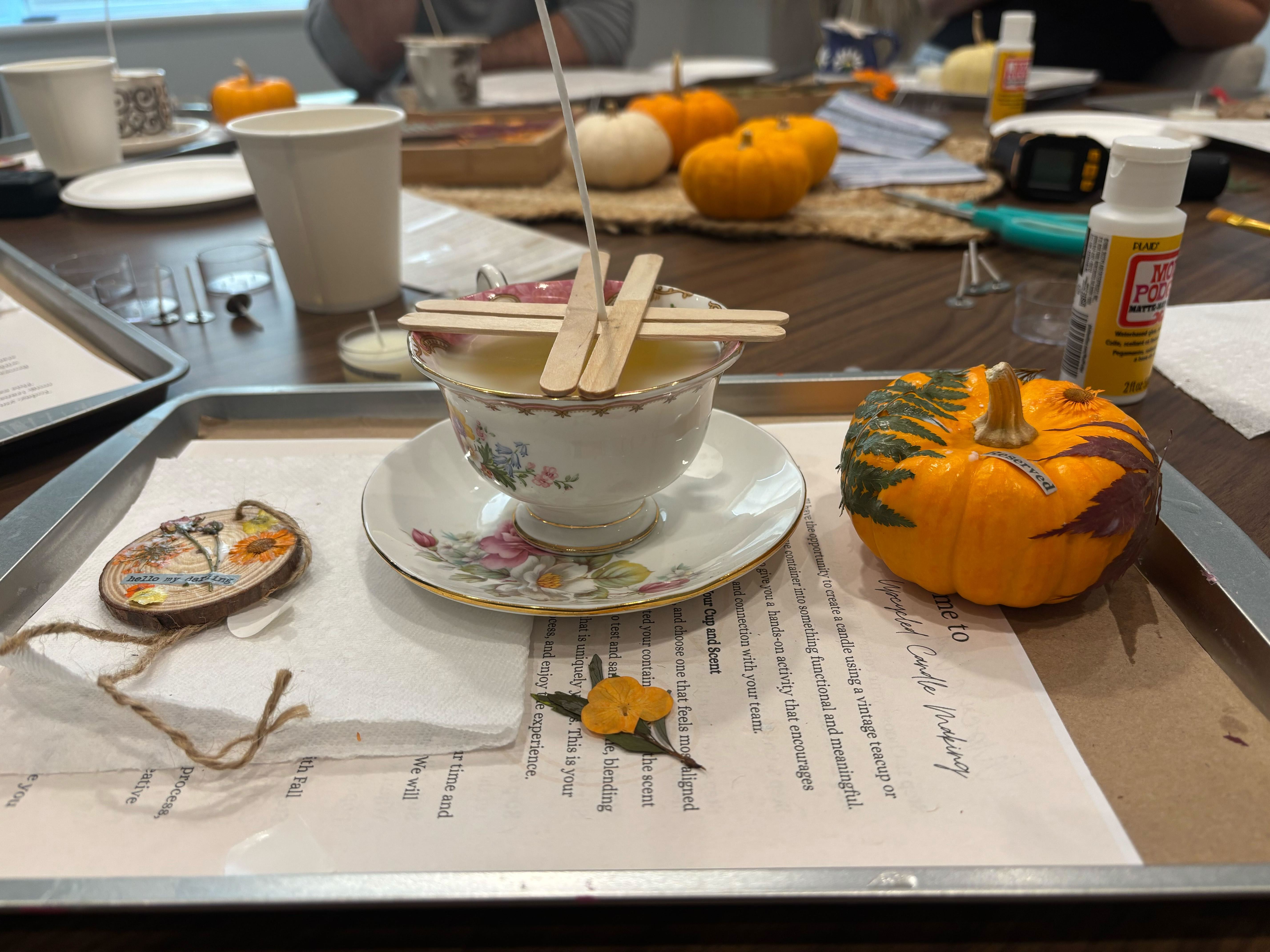 After a hearty BBQ lunch, the long-teased surprise activity was finally revealed: a candle-making workshop! I was instantly hooked. The instructor explained how it tied into aromatherapy, and the whole process: from picking the cup to blending fragrances and decorating with pressed flowers and mini pumpkins just felt incredibly grounding.