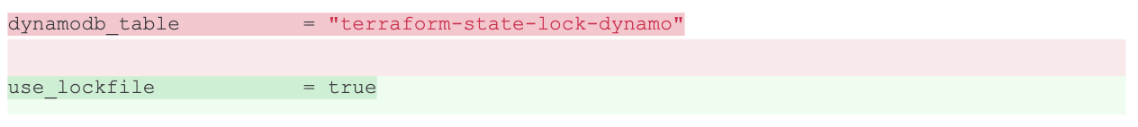 I want to briefly mention my use case before we get into the details. After the introduction of state locking in S3, Terraform deprecated the older DynamoDB-based state locking. In some cases it can be just a single-line change. In other cases, a lot more. The gist of the change is the following: